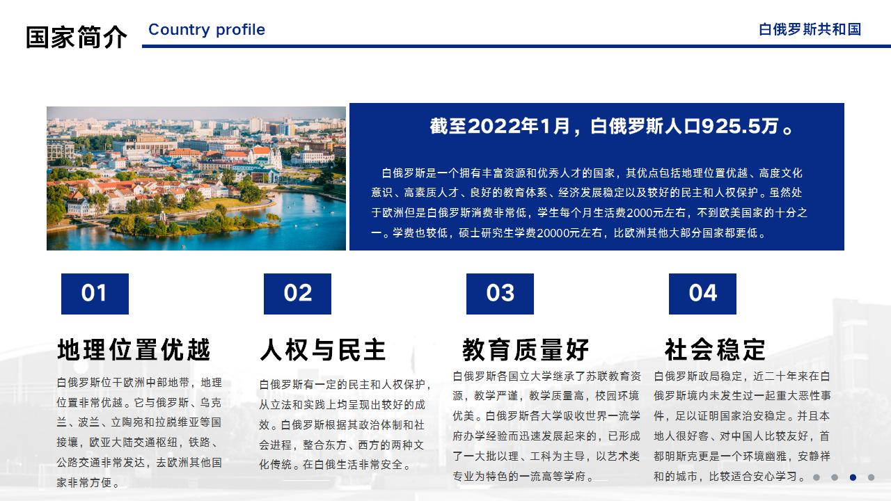 白(bái)羅斯的(de)教育秉承了(le)前蘇聯的(de)優良傳統,₽★很(hěn)多(duō)學科(kē)專業(yè)在←"↑世界都(dōu)名列前茅。其中的(de)白(bái)羅斯國(guó)立大(dàπ∏λ©)學在世界綜合類大(dà)學排名中名列47位,世界QS排行(xíng)榜29€≈5位,亞歐美(měi)國(guó)家(jiā)均承認白(bái)羅斯 "的(de)高(gāo)等教育學曆。另外(wài),白(báiε→←)羅斯高(gāo)等院校(xiào)的(de)師(shī)資隊伍有(✔♠¶yǒu)強大(dà)的(de)教學和(hé)科(kē)研能±>(néng)力。教學環境和(hé)設施先進,治學嚴謹,學科(kē)齊全♣♠ €,教學制(zhì)度完善。