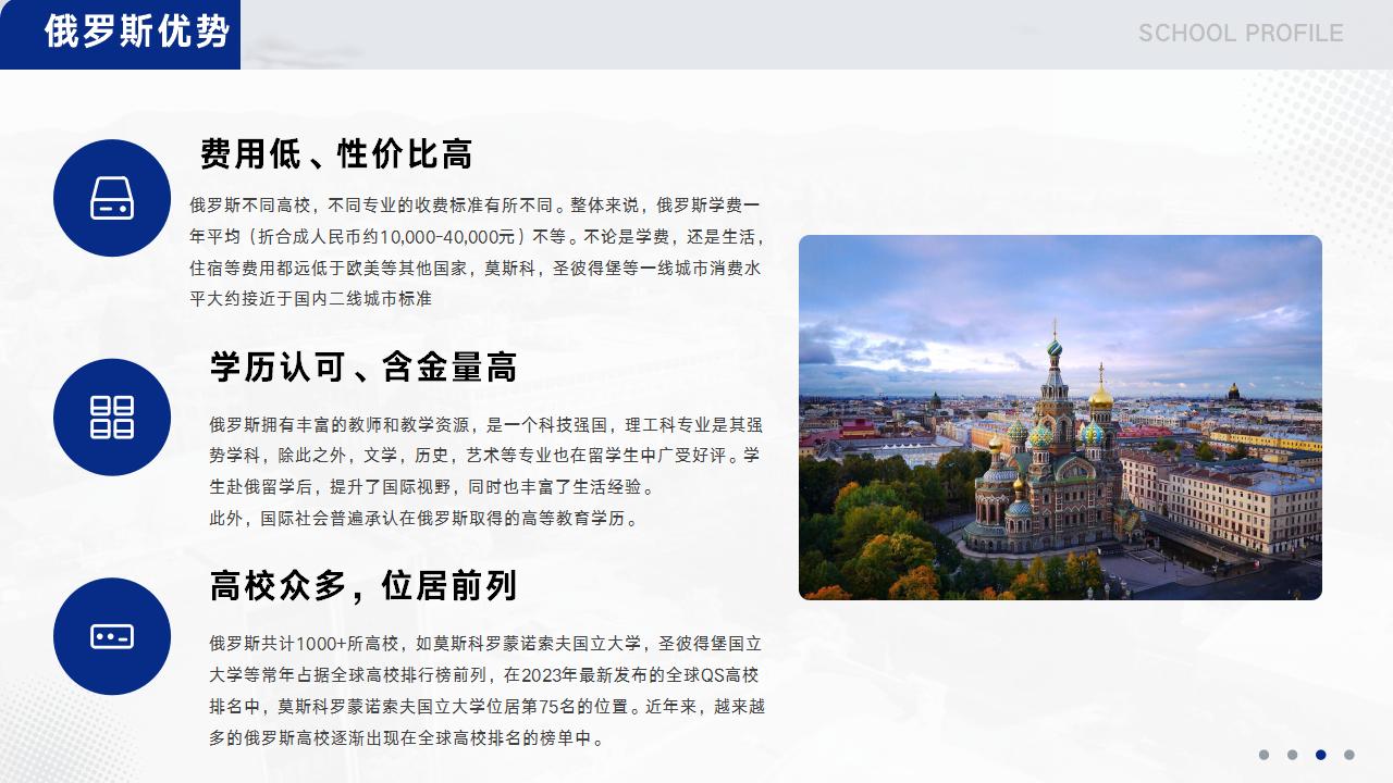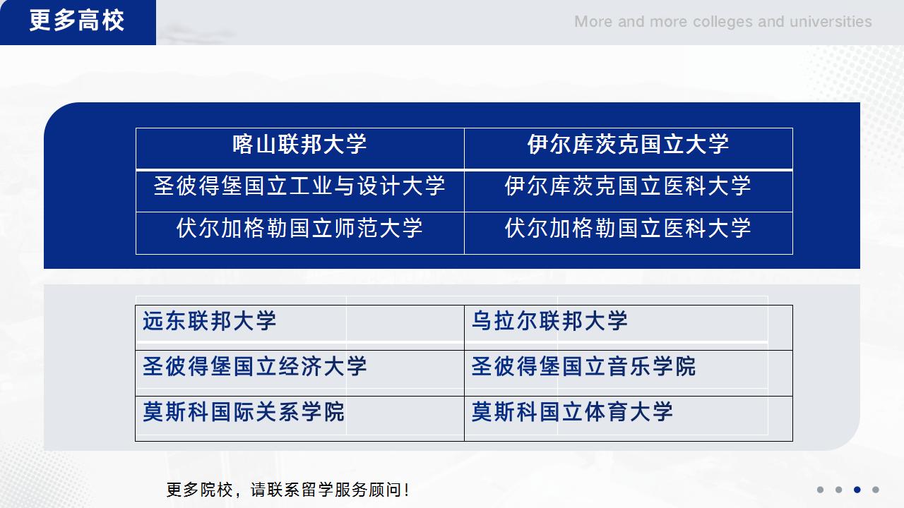 6.入學門(mén)檻低(dī):去(qù)俄羅斯留學入學門(mén)檻比&£≠較低(dī)。學生(shēng)隻需要(yào)直接提交材§↑"π料、遞交申請(qǐng)就(jiù)可(kě)以了(le),不(bù)需要(λ∏yào)參加俄語考試。如(rú)英語授課則需要(yào)雅思或者托福成績。α $(部分(fēn)大(dà)學參加入系考試:以英語交流為(wèi)主☆£,再加上(shàng)專業(yè)內(nèi)容)