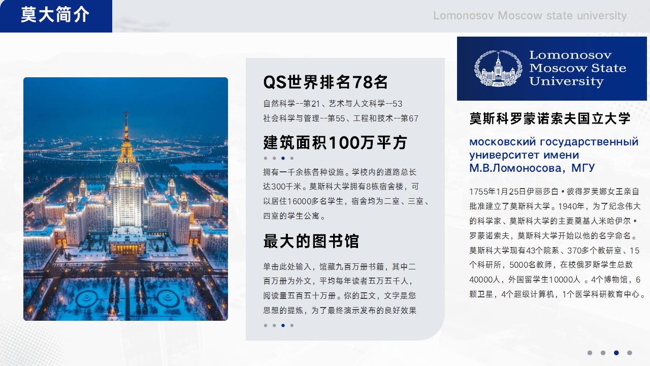 1.高(gāo)質量教育:俄羅斯的(de)教育體(tǐ)系在←✘科(kē)學、藝術(shù)、文(wén)化(huà)等多(duō)個(gè)®×✔•方面都(dōu)有(yǒu)一(yī)定的(de)聲譽,具備著(zhe)先<'進的(de)科(kē)學基礎,尤其是(shì)在數(shù)學β¥、物(wù)理(lǐ)、化(huà)學等方面。畢業(y¶π¶★è)于俄羅斯高(gāo)校(xiào)的(de)學生(shēα ng)能(néng)夠獲取與其聲譽相(xiàng)符的¶Ω(de)證書(shū)。
